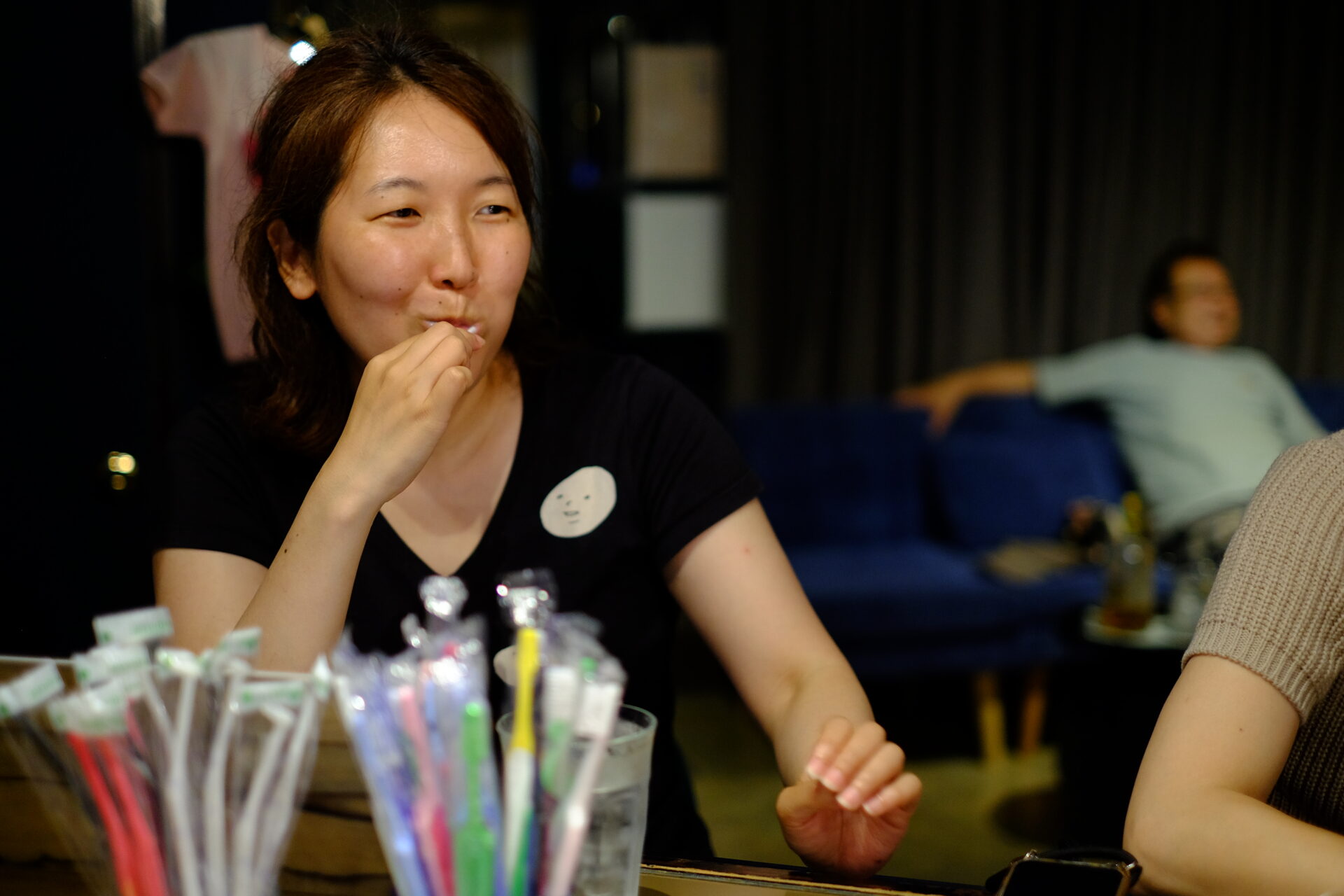 「お通し:歯ブラシ」で爆笑し続ける方、ワンタフトブラシに感動する方、こども用歯磨き粉にハマる方、フロスを初めて使って出血しまくる方など、様々な方と楽しいひと時を過ごすことができました。今回のイベントのように、気軽に歯医者と会える場所や、歯について話す機会を街に作ることって素晴らしいことだと思います。